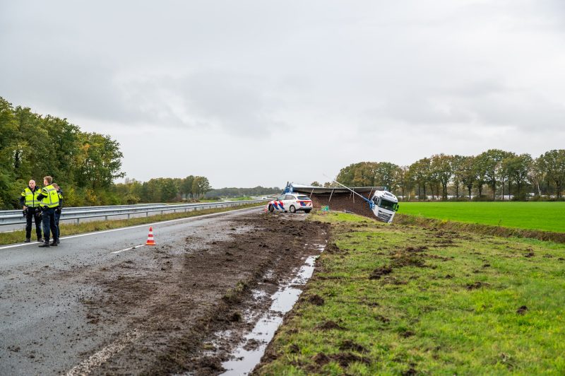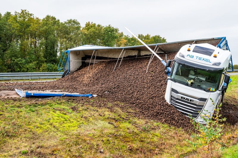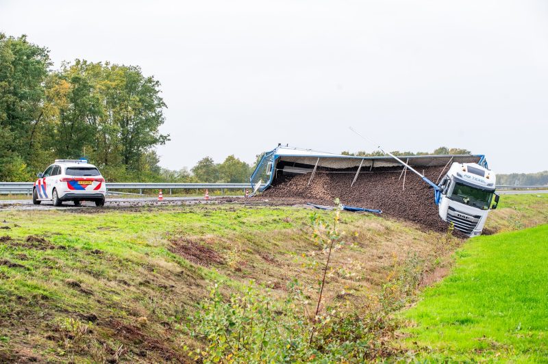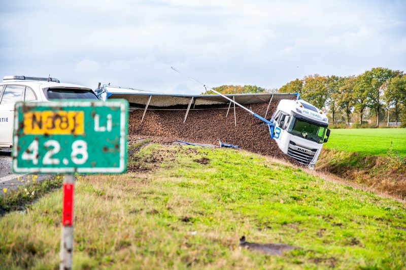 De vrachtwagen, afkomstig uit Smilde, had daar eerder de lading aardappelen geladen. Op weg richting Oosterwolde ging het mis. De chauffeur is door het ambulancepersoneel gecontroleerd, maar raakte gelukkig niet gewond.