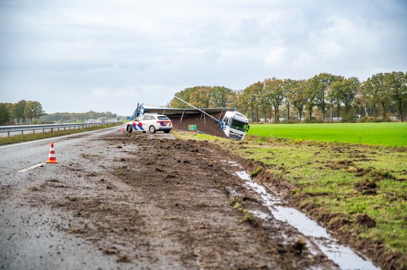 OOSTERWOLDE — Zaterdagmiddag rond 14:20 uur zijn de hulpdiensten, waaronder politie en ambulance, gealarmeerd voor een ongeval op de N381 bij Oosterwolde. Het incident vond plaats tussen De Venekoten en Drie Tolhekken, waarbij één vrachtwagen van de weg raakte en op de zijkant tot stilstand kwam.