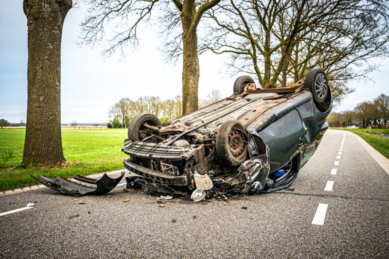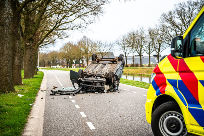 Ter plaatse bleek dat een auto na een botsing met een boom op de kop was beland. In het voertuig zaten twee personen. Meerdere hulpdiensten kwamen ter plaatse om hulp te verlenen.