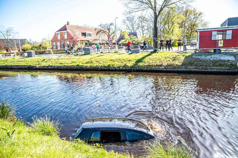 De bestuurder van de te water geraakte auto werd aangehouden op verdenking van rijden onder invloed (artikel 8) en is door de politie overgebracht naar het bureau in Oosterwolde. De bestuurder wist zelfstandig uit het voertuig te komen en werd door omstanders opgevangen. Brandweer, politie en een ambulance kwamen met spoed ter plaatse. Ambulancepersoneel heeft de betrokkenen gecontroleerd; niemand raakte gewond.
